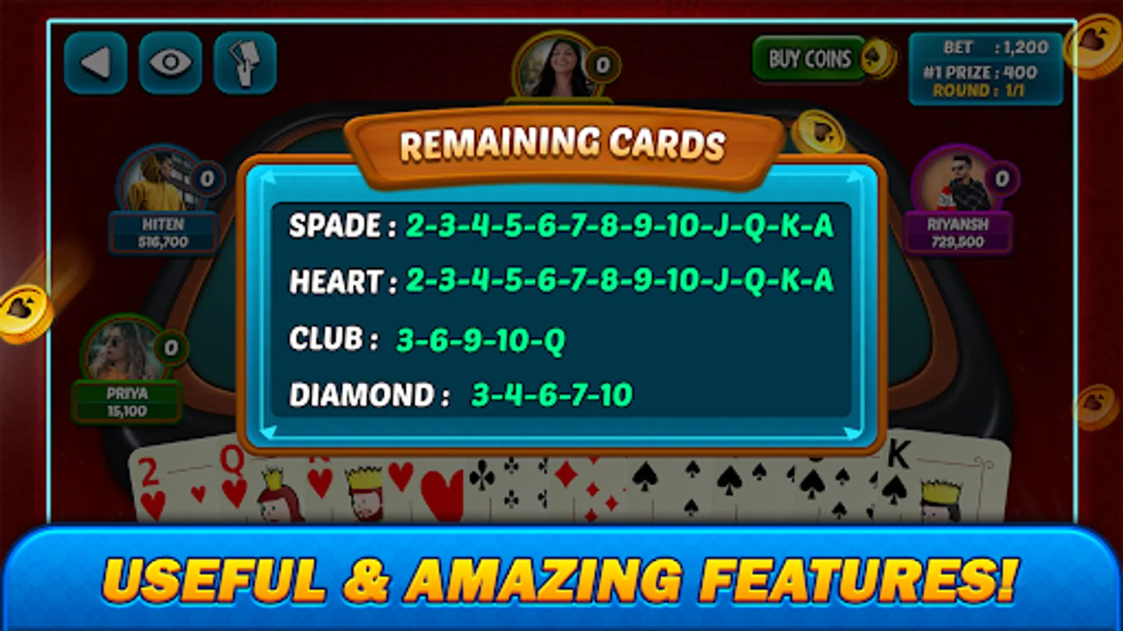 *REMAINING CARDS :- Forgot which cards are discarded? Take a look in remaining cards tab and figure out which cards are remain.