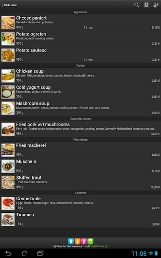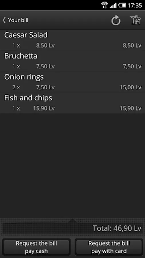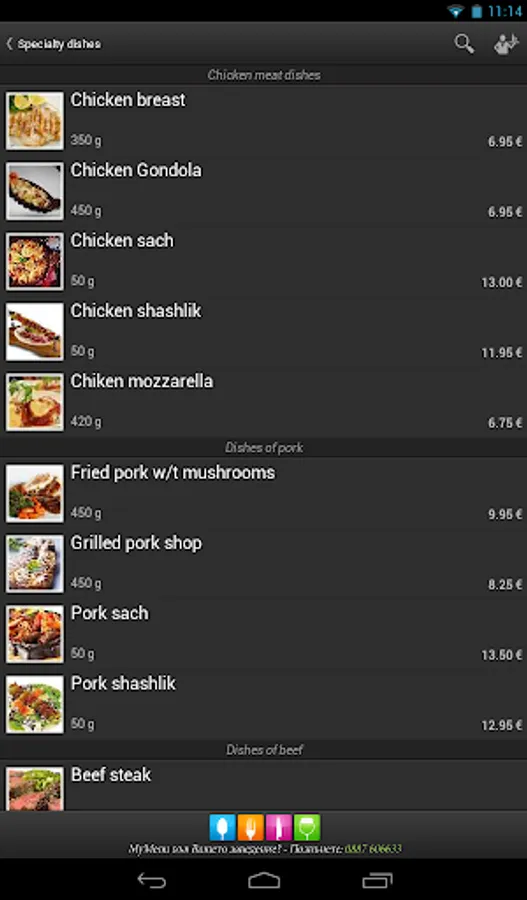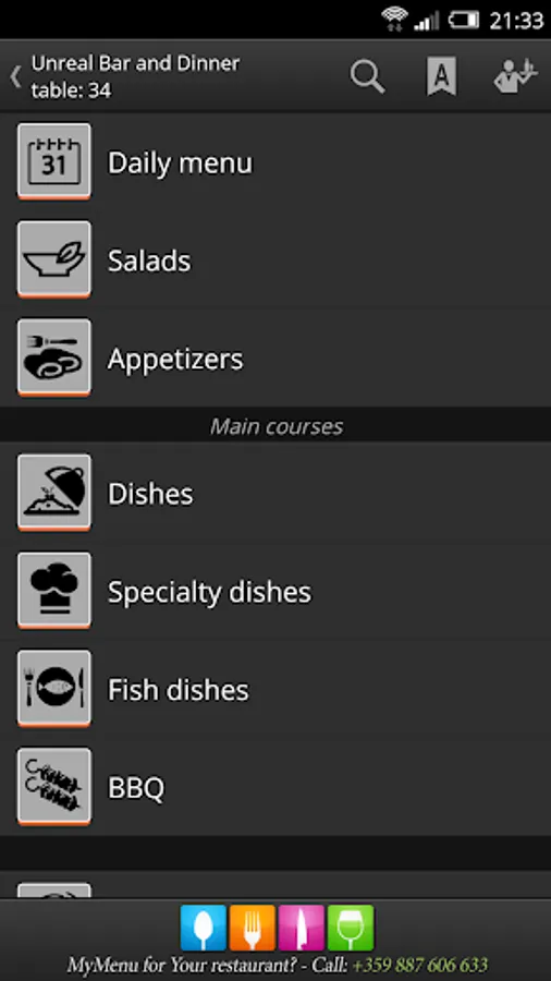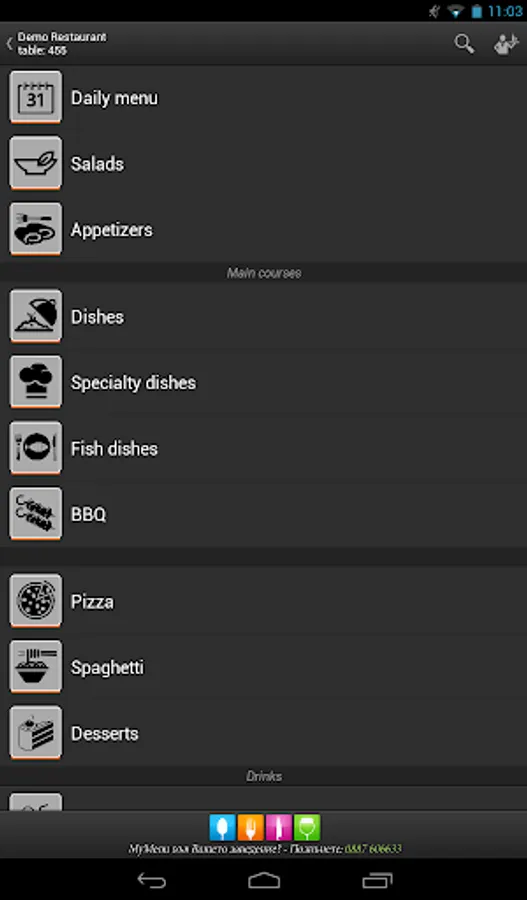 • If you need to call a waiter anyway, you can do it by a sinlge click on the display of your device.