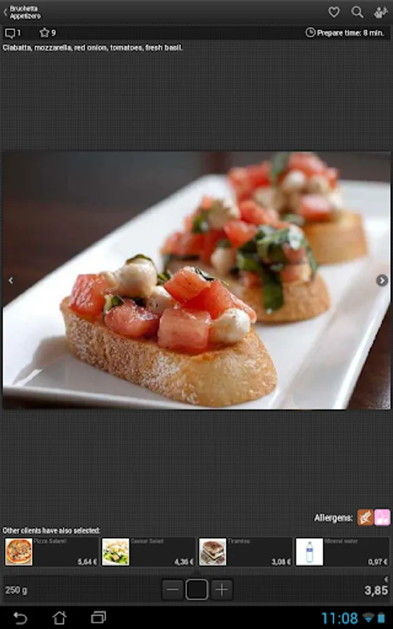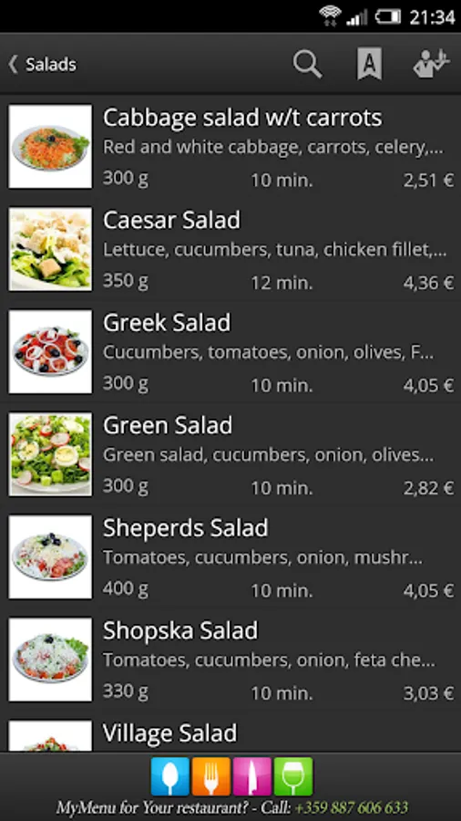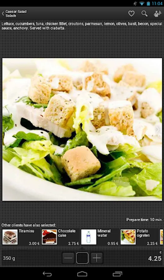 • You can inform yourself about the preparation time of any meal you have already ordered, or you intent to order.
