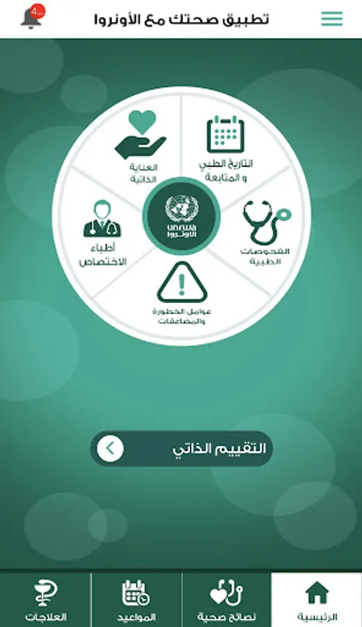 UNRWA is strengthening its approach to primary prevention non-communicable diseases (NCDs), namely diabetes and hypertension, through health education and raising the awareness on risk factors among Palestine refuges. UNRWA’s Health Department decided in 2019 to develop this mobile application, which is a reflection of the paper NCD booklet, aiming to harness mobile technology to provide sustainable, scalable and cost-effective solutions for Palestine refugees and any Arabic speaking person in the world concerning diabetes and hypertension, and their risk factors, and to reduce exposure of the patients to disability or premature death.