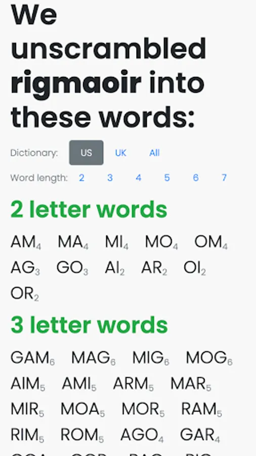 If you like playing Scrabble, Words With Friends, or Text Twist, you're going to need a great word unscrambler. The good news is, Unscrambled Words uses the official Tournament Dictionaries (TWL and SOWPODS) to give you the official and accurate set of words that can be used in these games. Good luck!