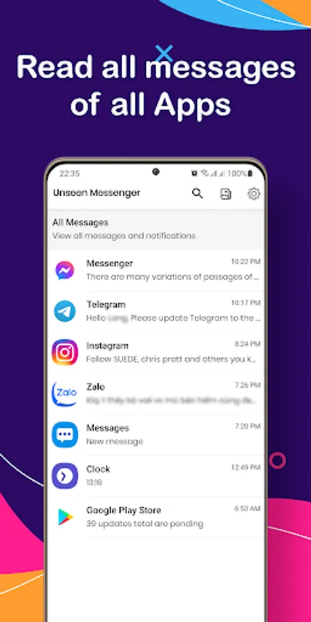 Unseen Messenger can store messages and notifications from any messaging application installed on your mobile. You can even choose the app from which you need to store the messages.
