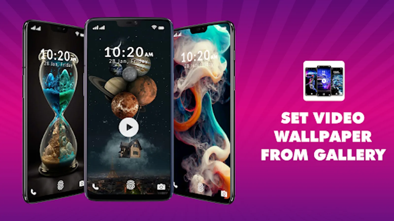 Select your favourite video from gallery and use video wallpaper set your video as live wallpaper with our video live wallpaper maker application . Set fun video as your moving background on your phone and make them my lively wallpaper