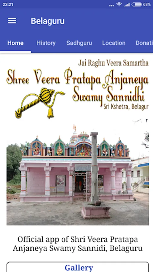 Shri Kshetra Belaguru is the official Android application of Shri Veerapratapa Anjaneya Sannidi Belaguru. The application was launched by Shri Ramadhutha Bindu Madhava Sadguru on the auspicious day of Guru Poornima (09-07-2017).
