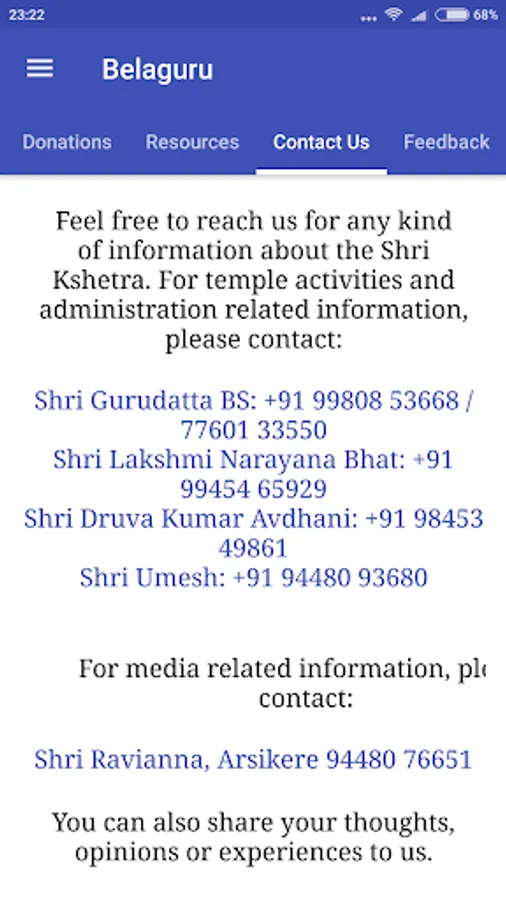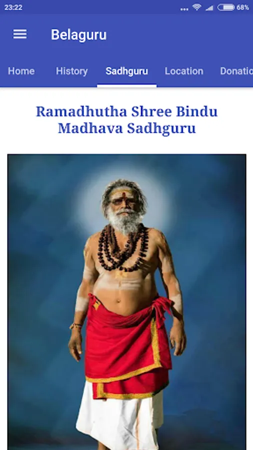 The application is an attempt to spread the glory of this place. It also showcases all the activities related to the temple. Sadbhakthas are requested to download the application and share it with the interested people. All are requested to update the application when notified.