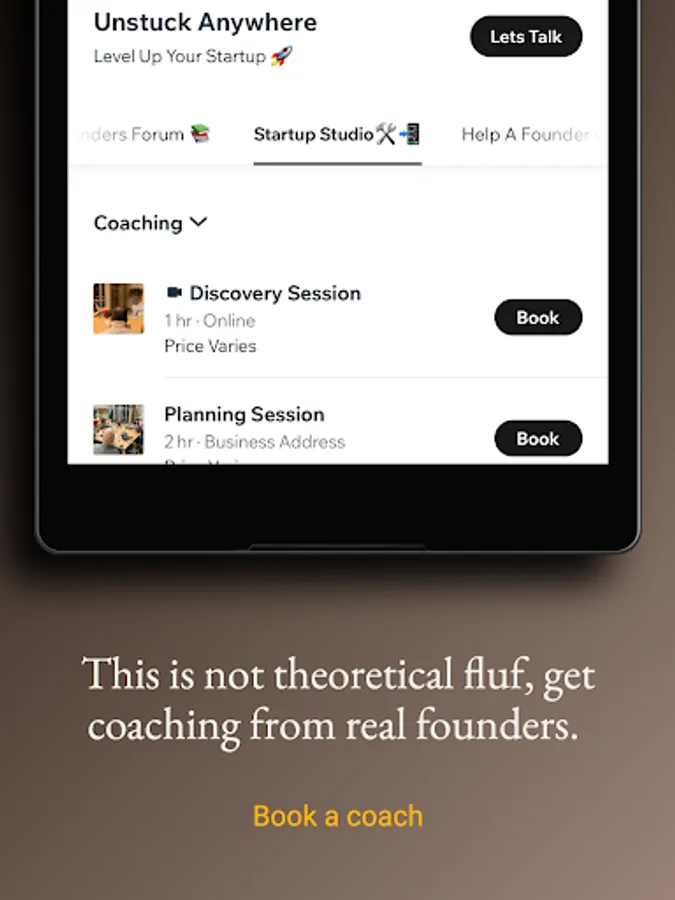 GET HELP: Book a coaching sessions with a startup expert or get help building your MVP.