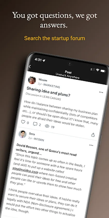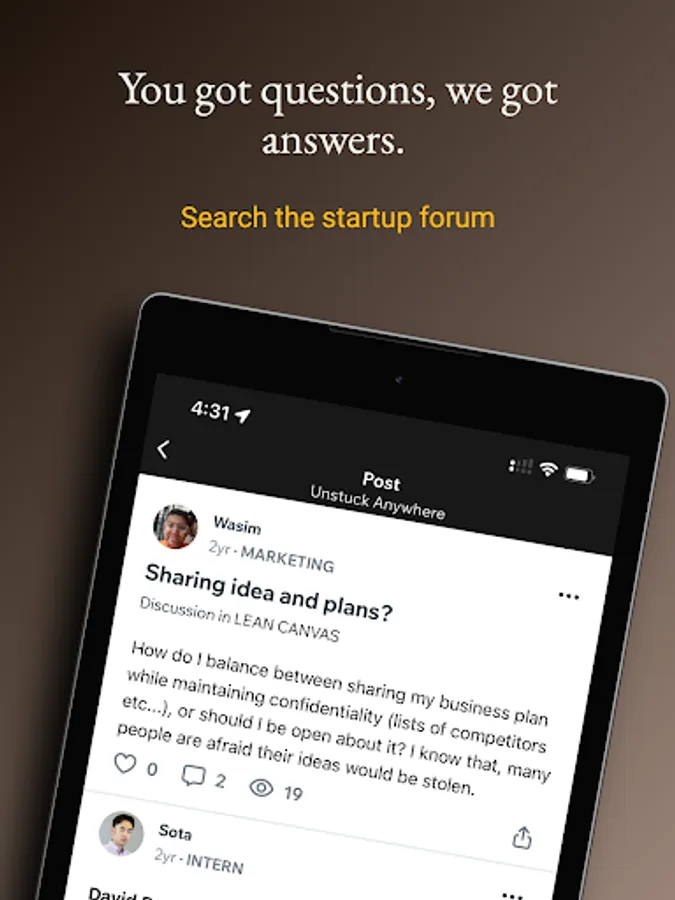 LEARN: modules broken down into categories, from Fundraising to Technogy we got you covered. Read comments, ask questions and contribute your knowledge in the startup forum.