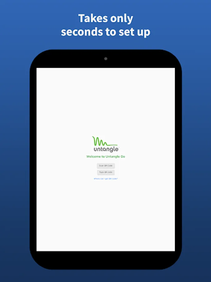 Untangle Go is easy to set up after downloading from the app. From your computer browser, simply go to your ETM Dashboard account settings and then scan the QR code with your device.
