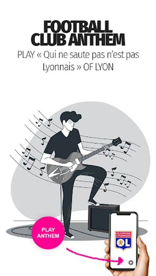 ☑︎ Football club anthem: play " Qui ne saute pas n'est pas Lyonnais " with a single tap.