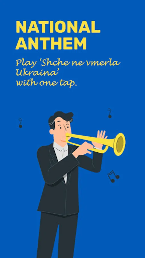 ☑︎ Immerse in the National Anthem: Listen to the Ukraine national anthem and be captivated by its iconic melodies.