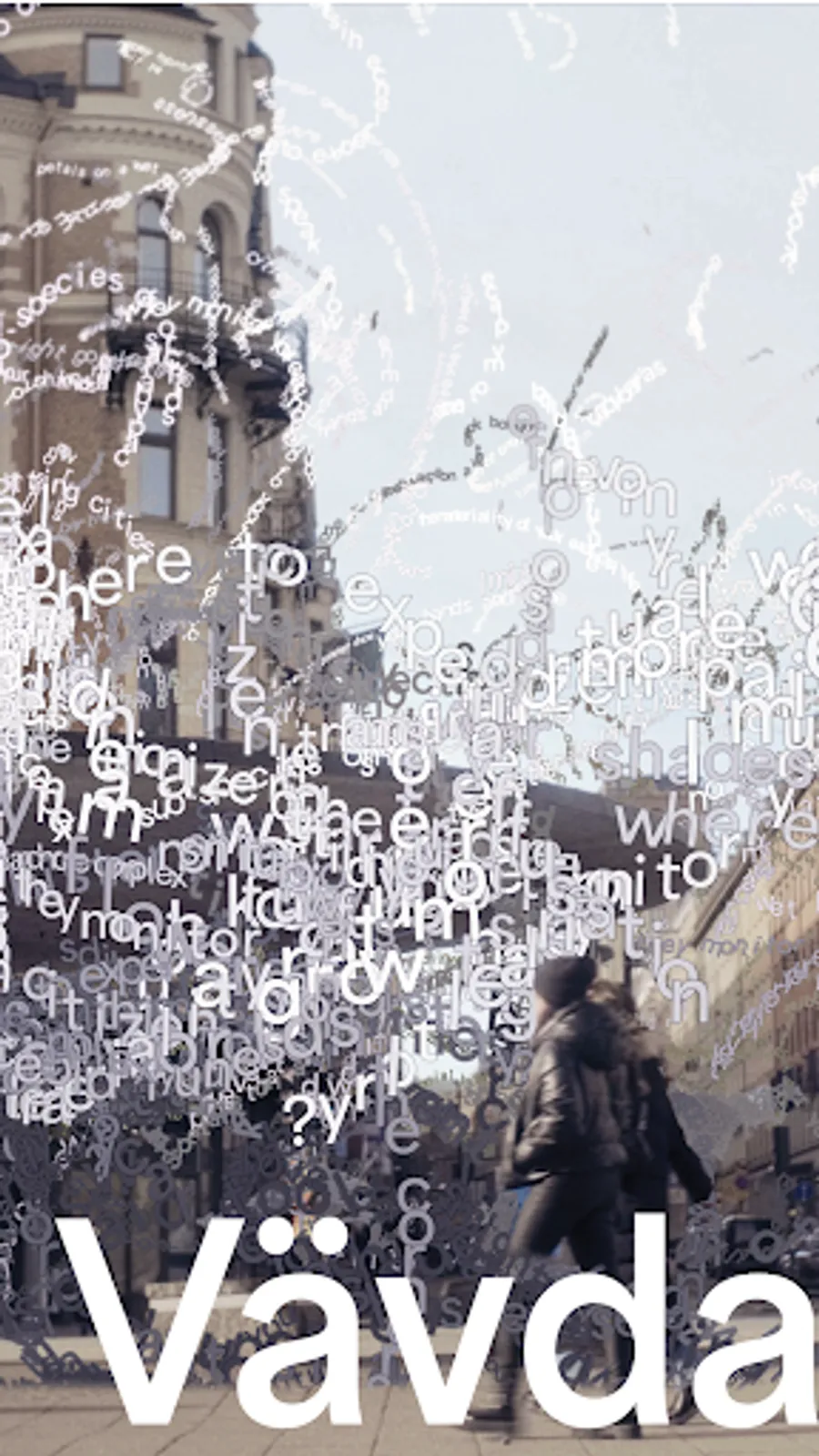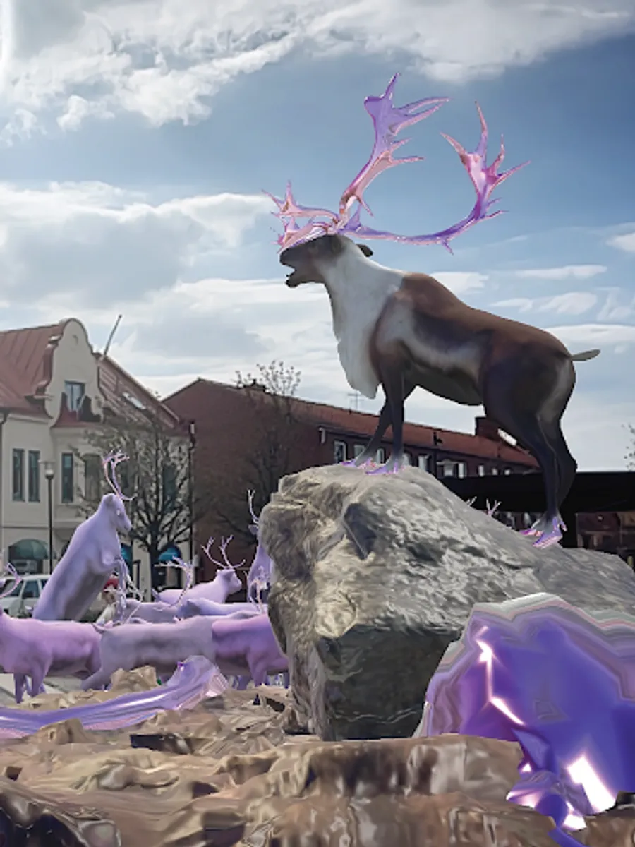 The exhibition showcases new AR artworks by 10 Swedish artists, who are exhibited at over 3000 unique sites. Each artwork is developed for a specific site type, for example, a town square or a bus stop, and becomes uniquely situated in each location. The audience experiences the art through the Woven Spaces app, which they access from their own devices. All artworks are interactive and make use of the latest technological developments within augmented reality, scalable networking infrastructures, and similar technologies to create an immersive experience beyond anything that has been done previously in this field.