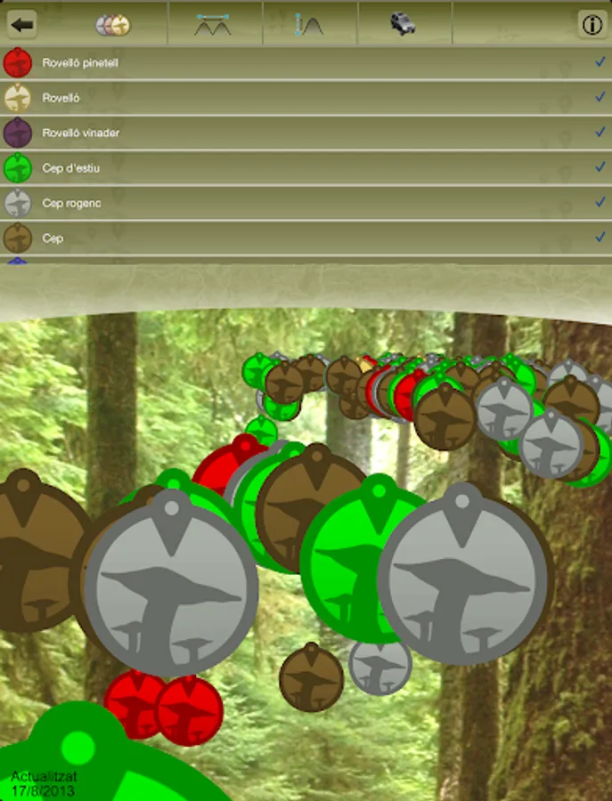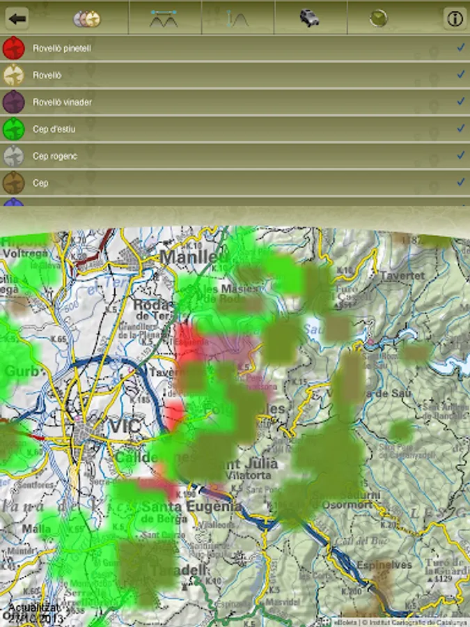eBolets is the first scientifically based and reliable mycological prediction application for mobile devices. It is only necessary to connect to the internet to open the daily prediction calculations that allow you to visualize on the map of Catalonia the appearance of the species: Múrgola, moixernó, rovelló pinetell, rovelló, rovelló vinader, fredolic, trumpet of death, black llenega, ou de reig, camasec, cep d'estiu, rossinyol, cep rogenc, cep i cep sureny. The Lite version has a maximum zoom limit, therefore the precision is improved. To avoid this limitation, use the payment version.