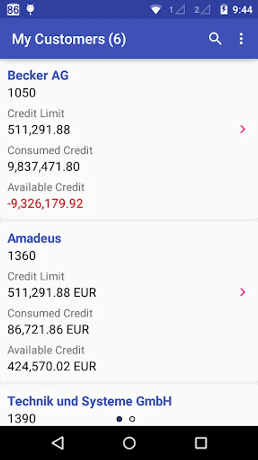 - Search for any customer in SAP and get the account receivables information - total credit available, credit used and credit remaining