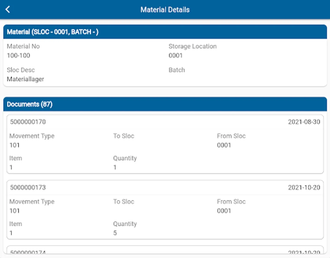 Get material stock quantities across plants, storage locations and batches. Stock quantities are available across various categories like unrestricted stock, restricted stock, consignment stock, stock blocked for quality check, etc. Accurate and timely stock information helps warehouse workers locate and identify stock quickly. View the goods movement documents associated with the material to know the previous goods movements for the material.