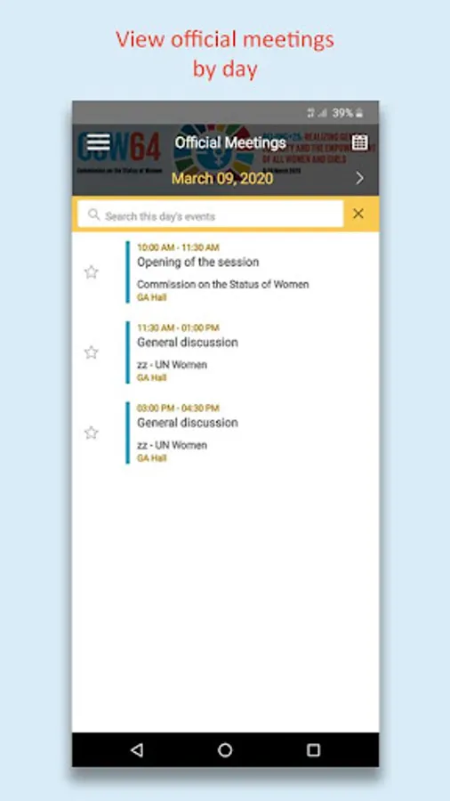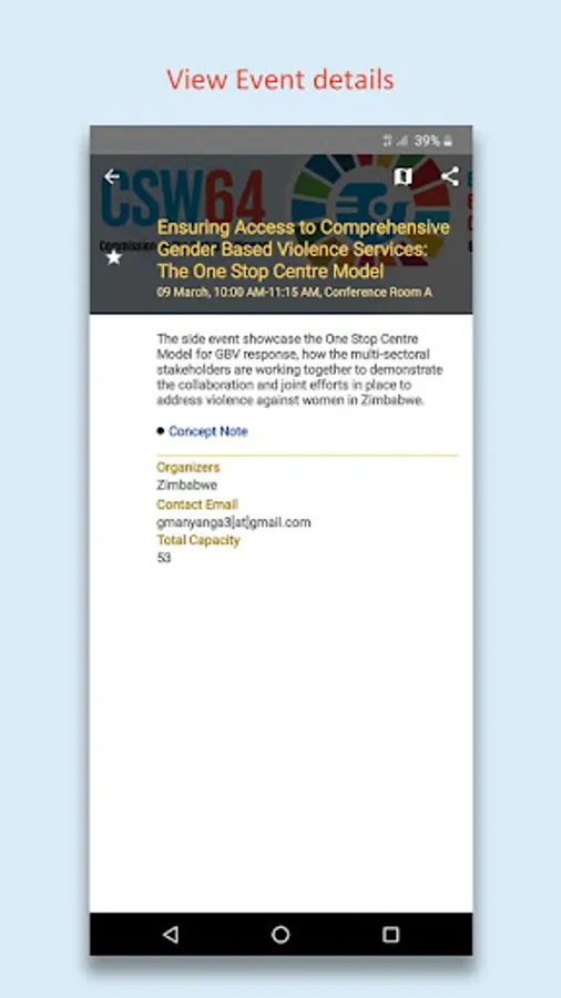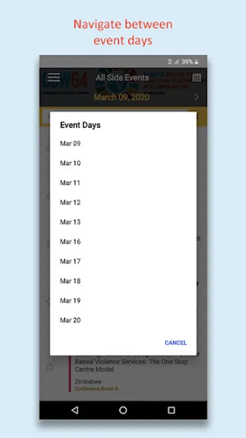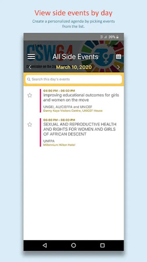 This app allows participants to view the full schedule of the side events and construct a personalized agenda of events.