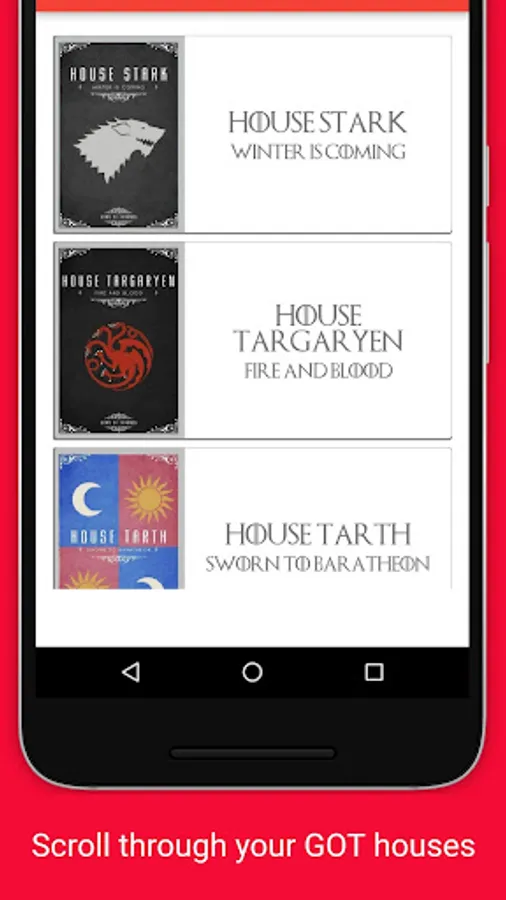 This app is based on George R. R. Martin's Game Of Thrones novel.