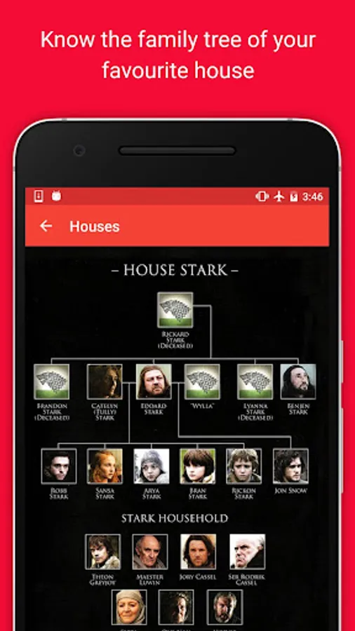 If you are a Game of Thrones fan, and need to know all about the GoT houses and the relationships between their families, or about the GoT world map, this app is meant for you.