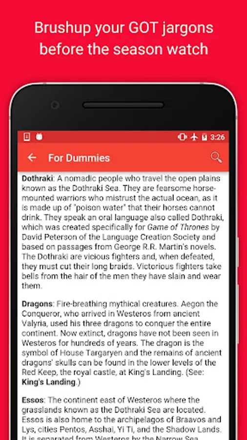 • Guide for the newbies out there to get you on track with the Game of Thrones jargon, before watching the GoT season.