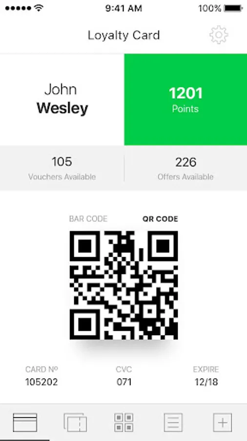 App to read customer cards, and redeem vouchers.