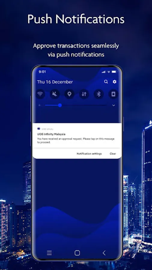 • Push Notification – Provide authorisation via push notifications received on the UOB Infinity mobile app.