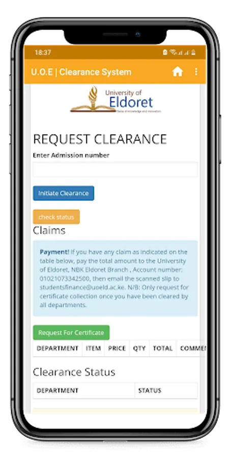 Disclaimer: This app does not store any information or data in databases, it just uses links to access various facilities of University of Eldoret.