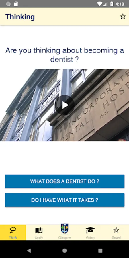 To set the scene, the app provides a series of short video clips illustrating the range of career opportunities that have been chosen by several graduates in dentistry from the University of Glasgow – you may be surprised at the diversity of options available.