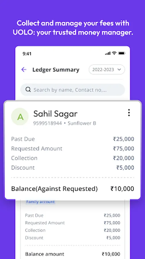 • Access an overall summary of each student's fees, due dates, and pending payments.