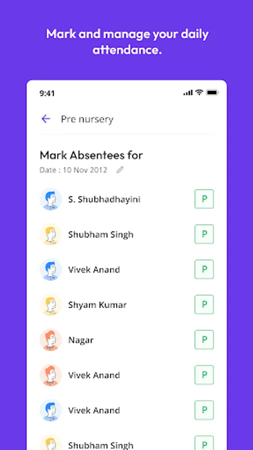 • Share instant automated communication with parents to keep them informed on the child’s daily attendance status.