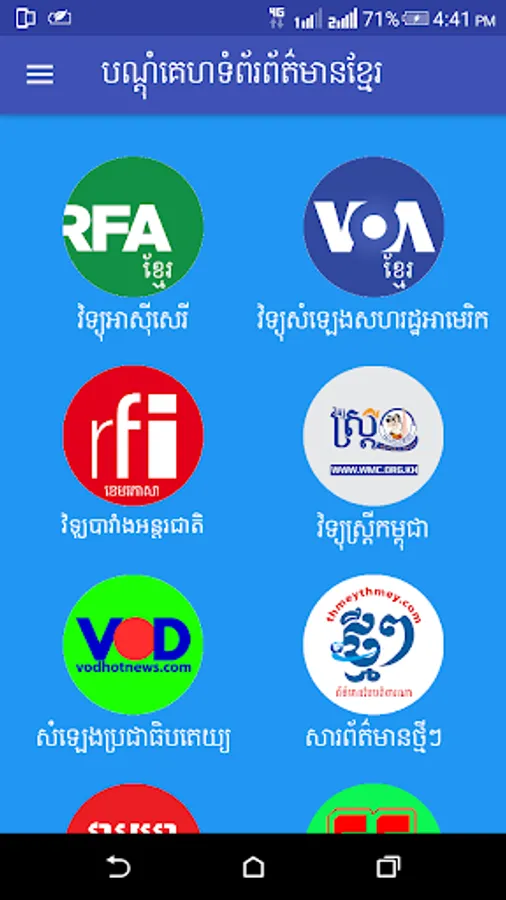RFA Khmer, VOA Khmer, RFI Khmer, ThmeyThmey, WMC, VAYOFM, VOD, FreshNews, Kohsontepheap Dialy, ReaksmeyKampuchea, Kampuchea Thmey, Cambodia Dialy, Phnom Penh Post,.... .