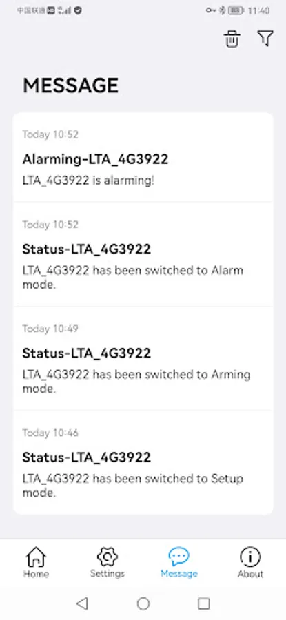 LTA-4G is an assistant APP for an electronic alarm.The user could use APP to check the status of the alarm, set it and receive message from it.
