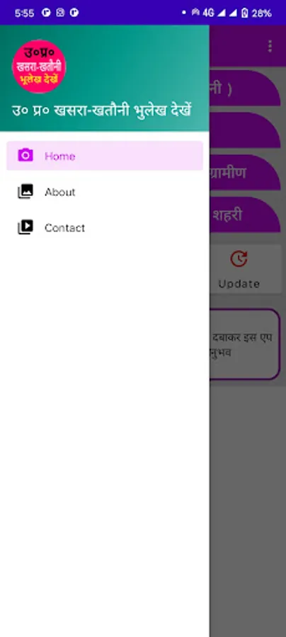 This "UP Bhulekh Online Khasra Khatauni App"can help you to find the details of your Land Registry using your Name, Khasra, Khatauni and Gata Numbers. You can view and save the records in image form in your mobile.