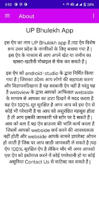 ✔️ It's just a utility app for people to view the land records available on UP Bhulekh Website.