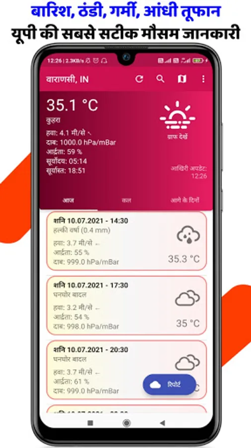 Hmare Application me aap ko dekhne ko milega ki aaj ka mausam kaisa rahega, aur aap dekh sakte hain Uttar Pradesh Weather News se aap ko pata chalega aaj barish hogi ya nahi, kal ka mausam kaisa rahega, tapman, thandi, thunderstorms etc.