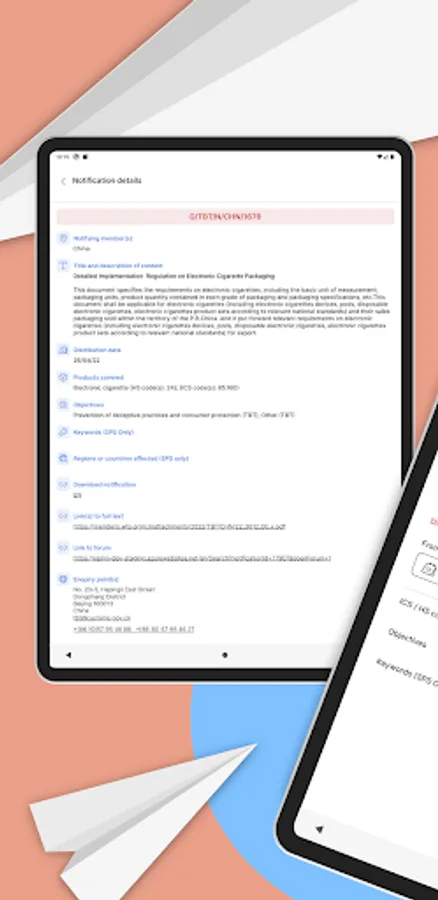 The information in the application is based on SPS and TBT notifications: these short info sheets by WTO members are circulated when changes in product requirements are planned. The timely information on changes in product requirements allows stakeholders to react to the changes, by contacting their domestic Enquiry Point, and/or changing production and assessment processes as required. Further details on the WTO's work on SPS and TBT is available on the WTO website www.wto.org.