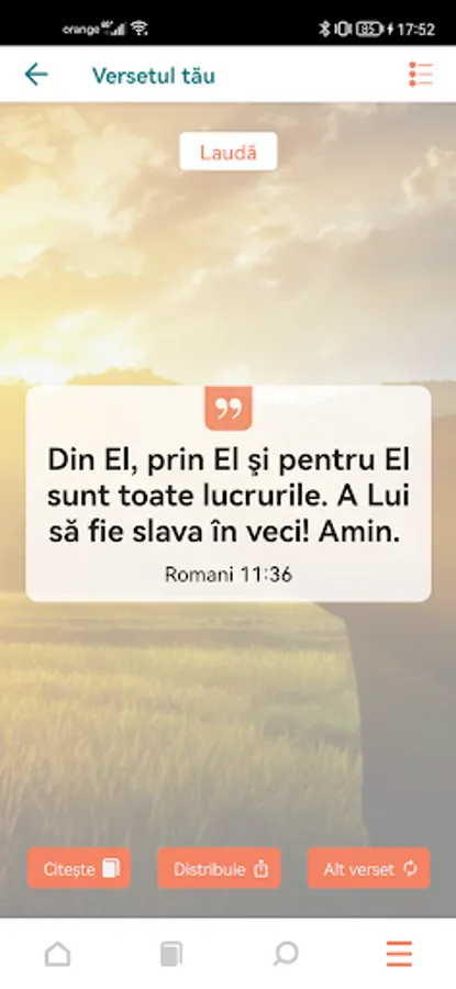 The MyBible website and application offer you the opportunity to read several versions of the Bible, both in Romanian and in other languages. The versions can also be read in parallel and can be studied using the tools provided by MyBible. We also offer you, for free, the Audio Bible produced by Radio Voice of Hope, recited by the radio producer, Ioan Paicu. Each chapter of the Bible is audio-recorded and can be listened to online at www.mybible.eu or downloaded from the MyBible app. Once downloaded, the audio Bible can also be accessed offline. Another resource at your disposal is the Youth Devotional that you receive every day, on your phone or tablet, through this application. MyBible also offers you the opportunity to access Bible verses on various topics that will help you in your spiritual development.