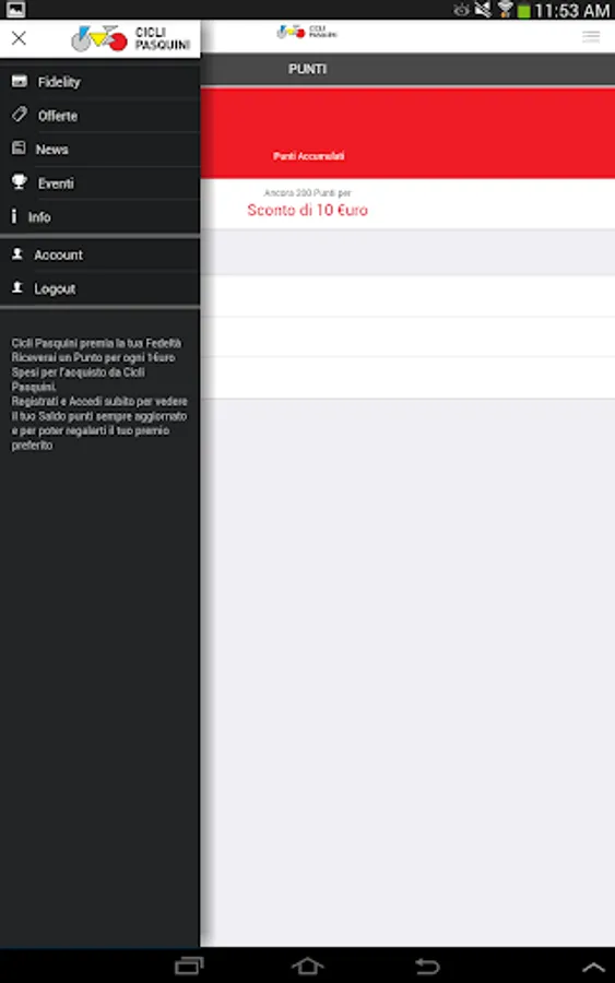 The app Pasquini cycles to date news about offers and to always have at hand their loyalty card which entitles you to discounts and unmissable awards