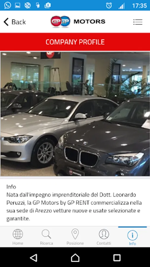 Born from a passion for cars of Dr. LEONARDO PERUZZI, it is a company that sells at its headquarters in Arezzo Via Fleming n. 69 new cars and used. Specializing in the marketing of German cars, technological excellence expression MOTORS GP offers not only the desired vehicles, but also the values of courtesy and availability.