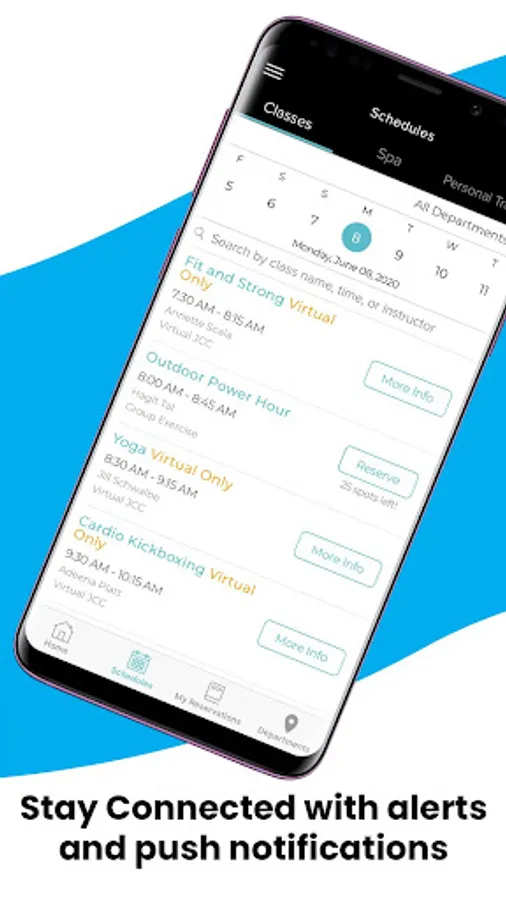 Reserve your spot in group exercise classes and manage training and spa appointments.
