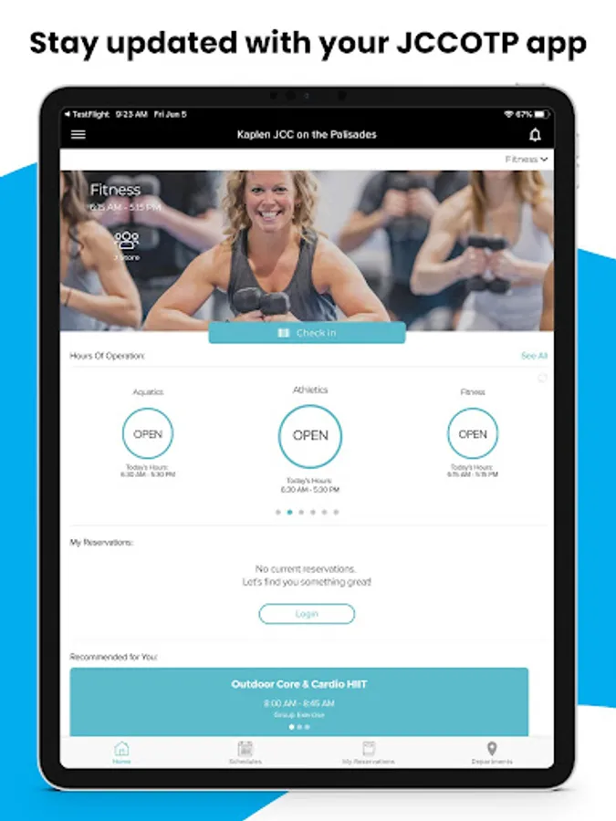 Stay up to date with Kaplen JCC by the Palisades by downloading our mobile app! Book your reservations for access to health & wellness facilities, sign-up for group exercise classes, and have easy access to hours, alerts, and programs.