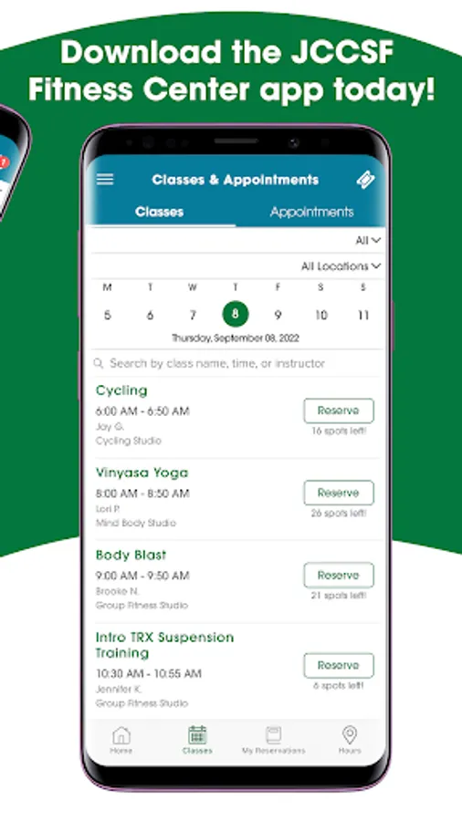 Download the JCCSF Fitness Center mobile app to register for classes, discover programs, receive alerts and push notifications, check in with your barcode and much more. Let’s get active!