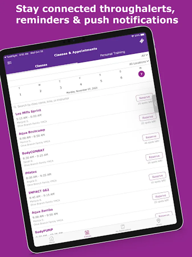 View, Search, and Reserve Group Exercise Classes and YPlay