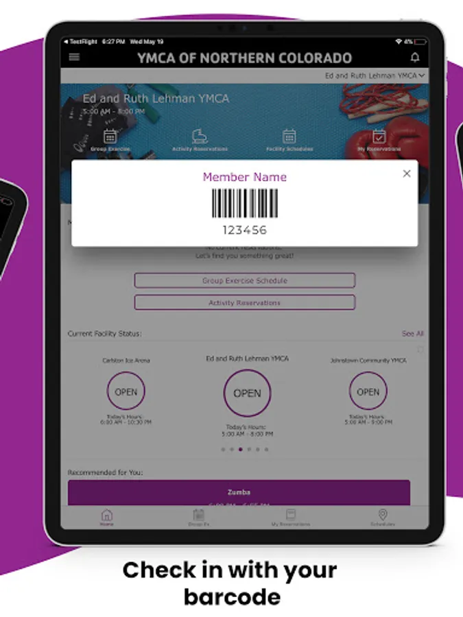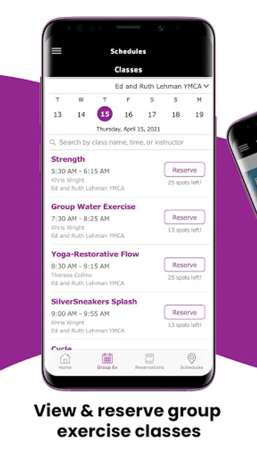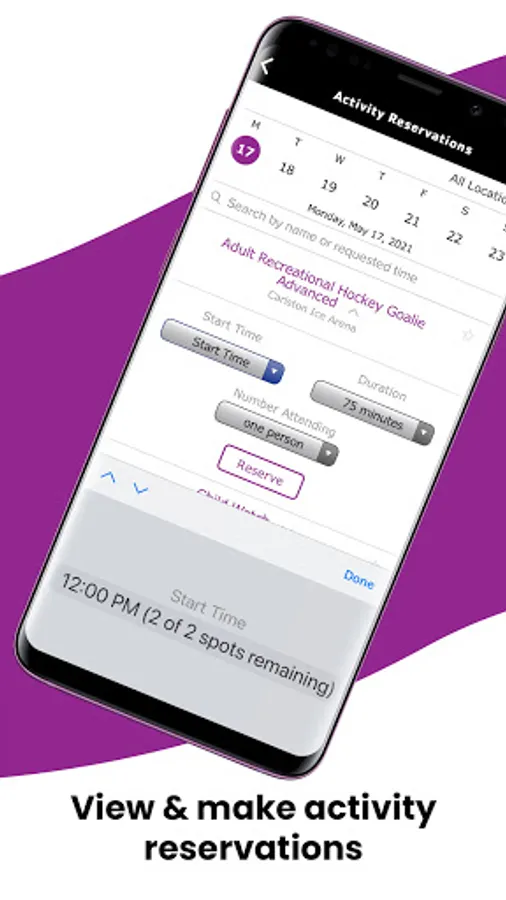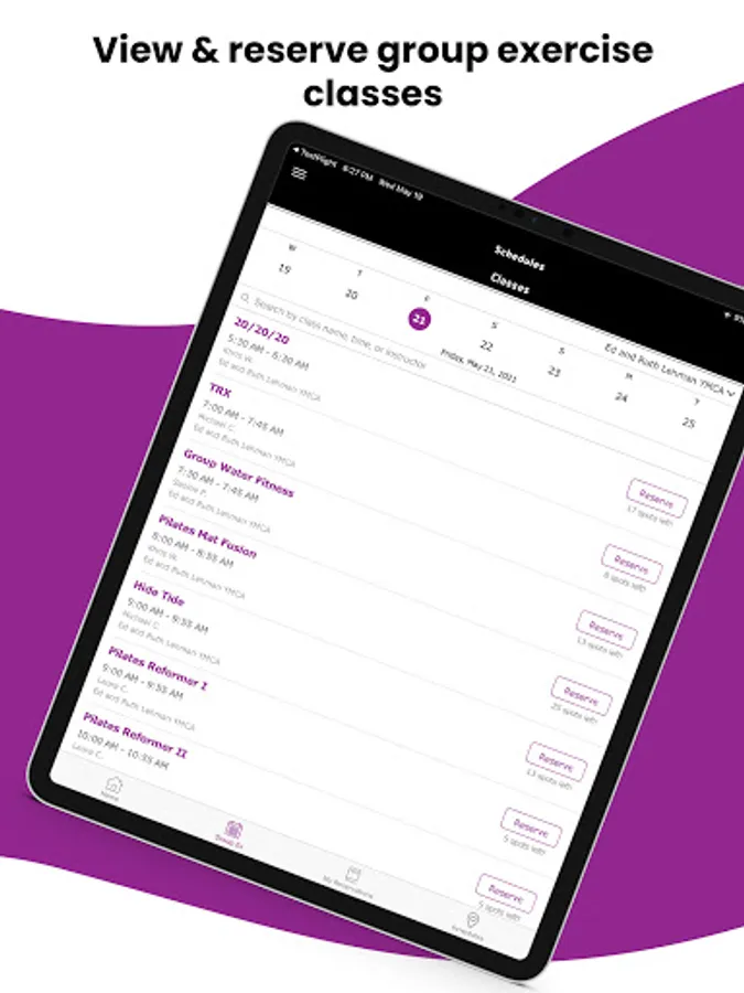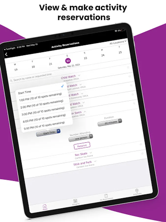 View and search daily offerings to reserve a spot in group exercise classes, some ice programs, child watch and more. View upcoming reservations and cancel, if needed.