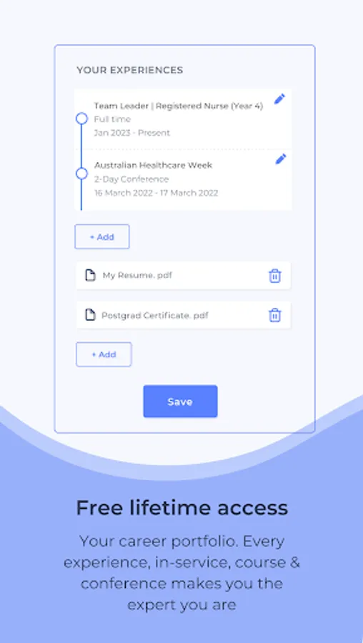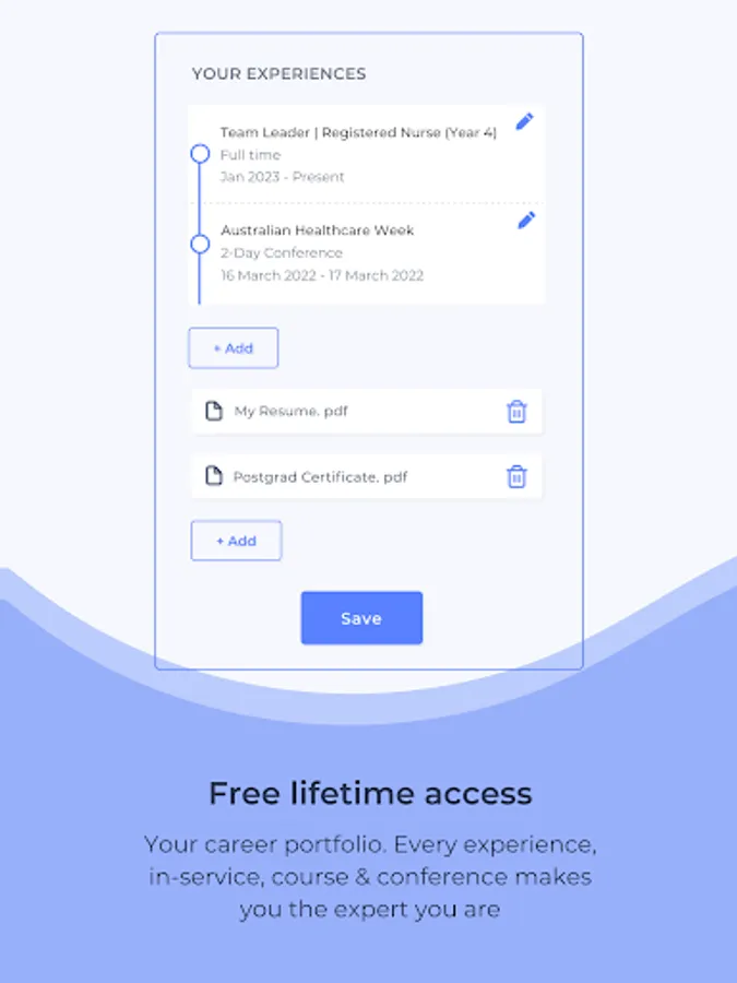 Build your online resume and store all your certifications, training and other healthcare documents free for life.