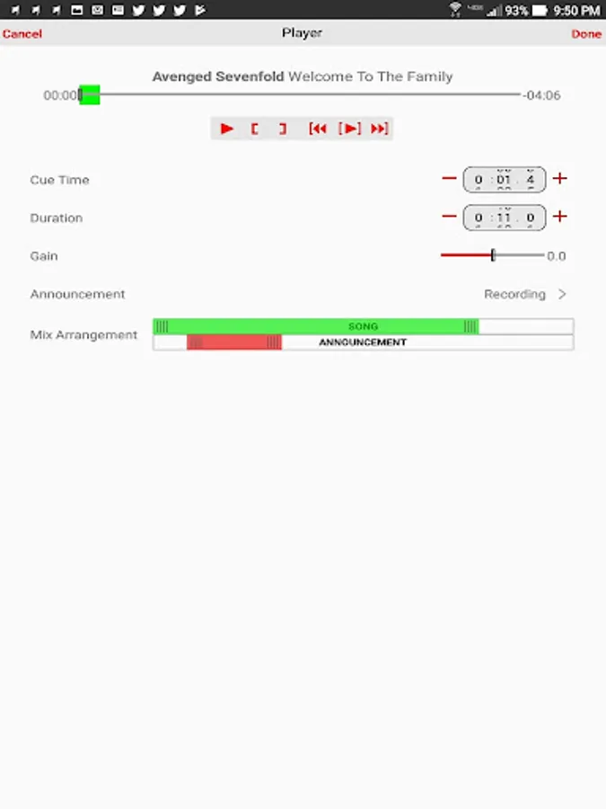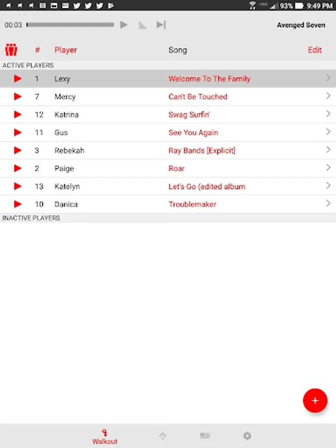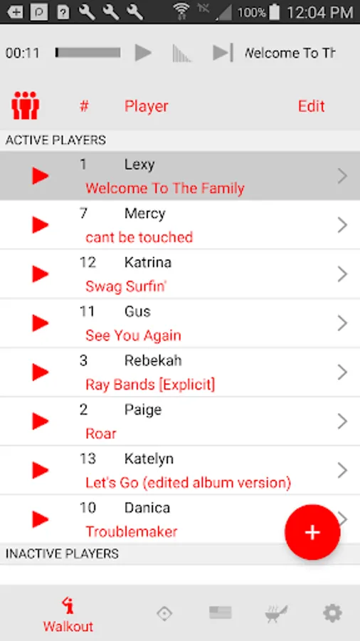 Walkout song DJ makes the difficult task of playing a walkout song for each individual batter as easy as tapping a button. Simply enter the player name and number then select a song from your music library or imported songs. The precise segment from that walkout song can then be set by selecting a position and playback duration using a simple and precise editing view. To assure that the songs are not blending into the background or splitting the ears of your fans, a volume level for each individual walkout song can also be set. Press the play button and 11 seconds later you have one pumped-up batter, and a song that smoothly fades as the batter steps up to the plate. You can also choose between imported, recorded, or computer text to speech announcements for your players either before or after their walkout song has played.