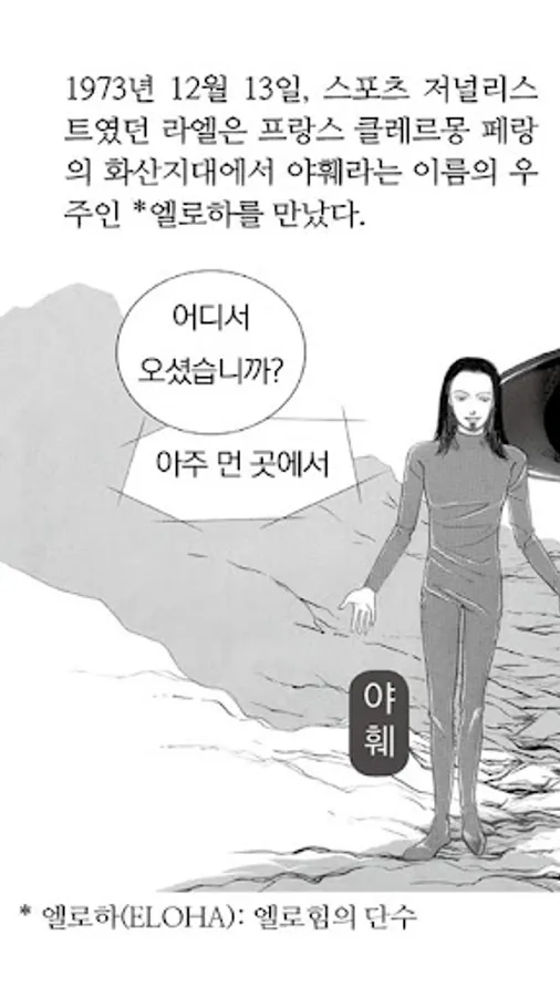 December 13, 1973 was a 27-year-old president and sports car racer young French journalist, Claude barley Long (Rael's real name) came down in front of the UFO alien Elohim ride to meet his principles and human origins of the universe and about the amazing future received a message. He is content to tell the world the International Raelian Movement was founded, Korea has also visited 06 times. Astronaut in his writings message (intelligent design) as well as the political genius, the feeling meditation, yes! Human cloning, and so a trip to awaken. (Www.rael.org Rael's all in the book available for free download)