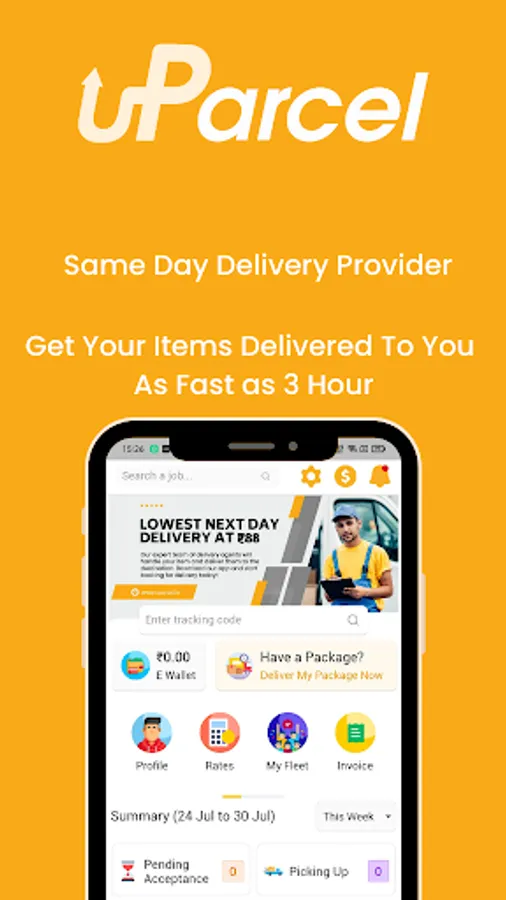 uParcel is your easiest way to deliver. We provide 24/7 delivery service in India. By using location based identification, the best delivery agent will be assigned to pick up your parcel and deliver them to their destination from just ₹88 per delivery without any minimum. You will get live tracking of the delivery and receive SMS and Email notifications on its status. Furthermore, you can contact the delivery agent directly to get updates.