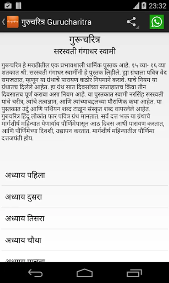 Gurucharitra is the biography of Shri Narasimha Sarasvati written bu shri Sarasvati Gangadhar swami. This book is considered as extremely revered and needs to be read with caution and respect. The book lays down several rules of reading it and one is expected to read it for at least 7 days. This book is in Marathi.