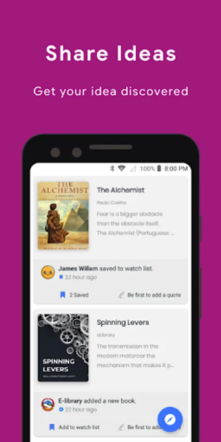 Create a PDF add a cover, all from the app. When inspiration strikes, you’ll have Elibrary right in your pocket.