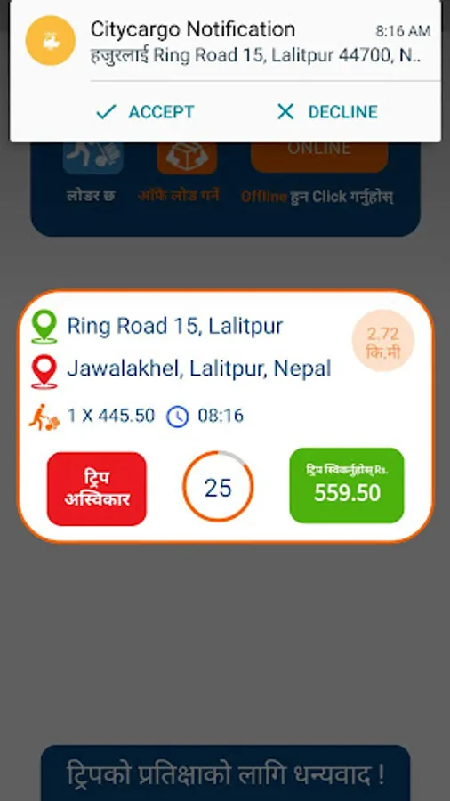 Registered city cargo drivers can accept deliveries assigned to them by our team.