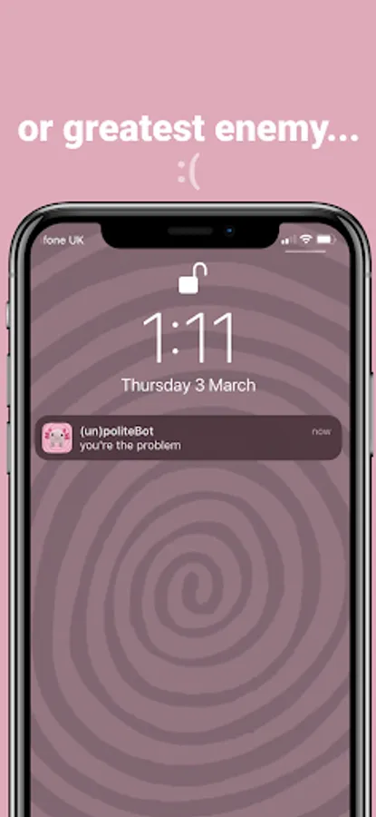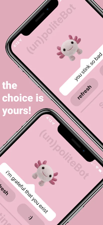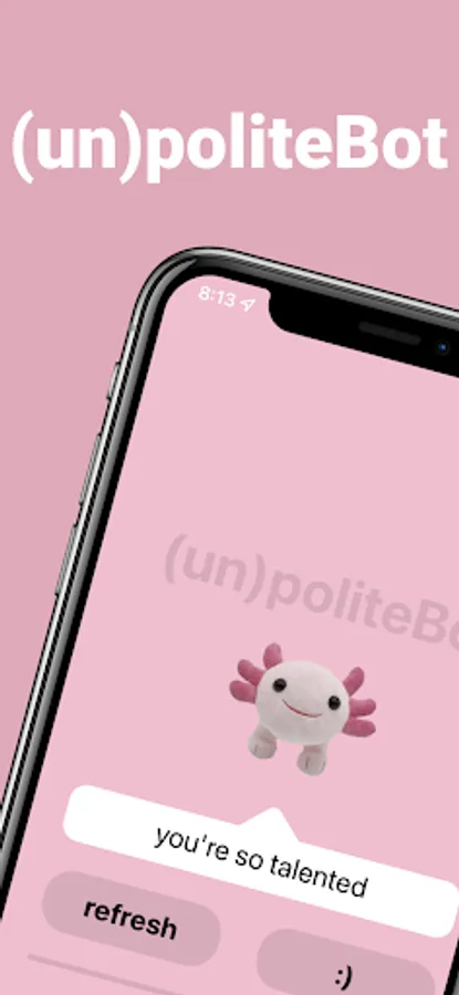 A bot that will always be there for you when you need them most, a bot that looks out for you, a bot that appraises you, a bot that takes care of your mental health, a bot that loves you. Your newest best-friend!, (un)politeBot :)